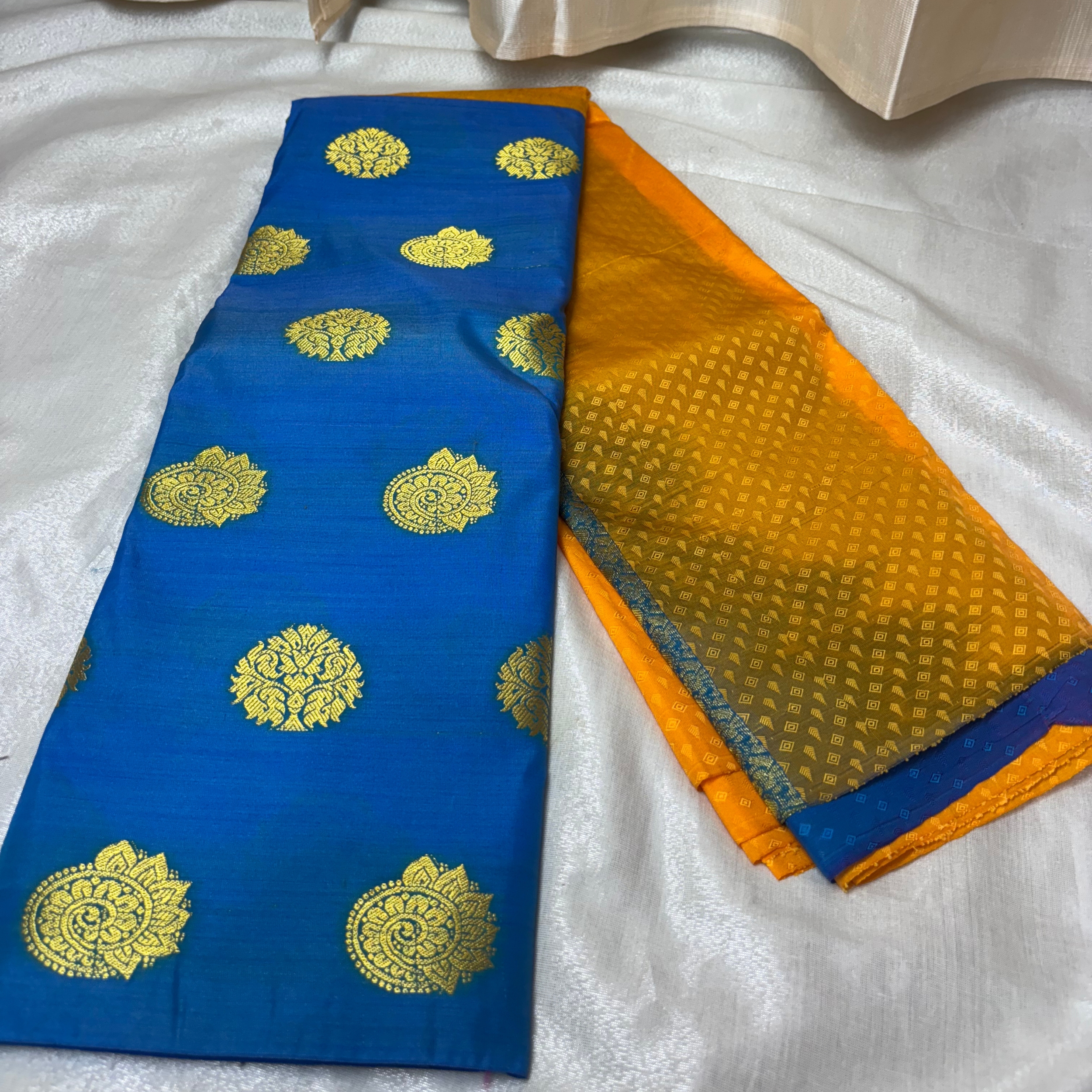 This elegant handloom saree is designed in a classic half-and-half concept, where two distinct weaves come together in perfect balance. The contrast between the sections highlights the craftsmanship of traditional artisans, while the seamless transition enhances the overall grace of the drape. A timeless piece that reflects heritage, structure, and refined elegance.
