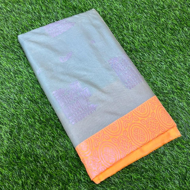 A sophisticated dual-tone grey body accented with subtle floral motifs and a bright amber-orange border. This unique combination offers a refined, contemporary look for formal gatherings.
