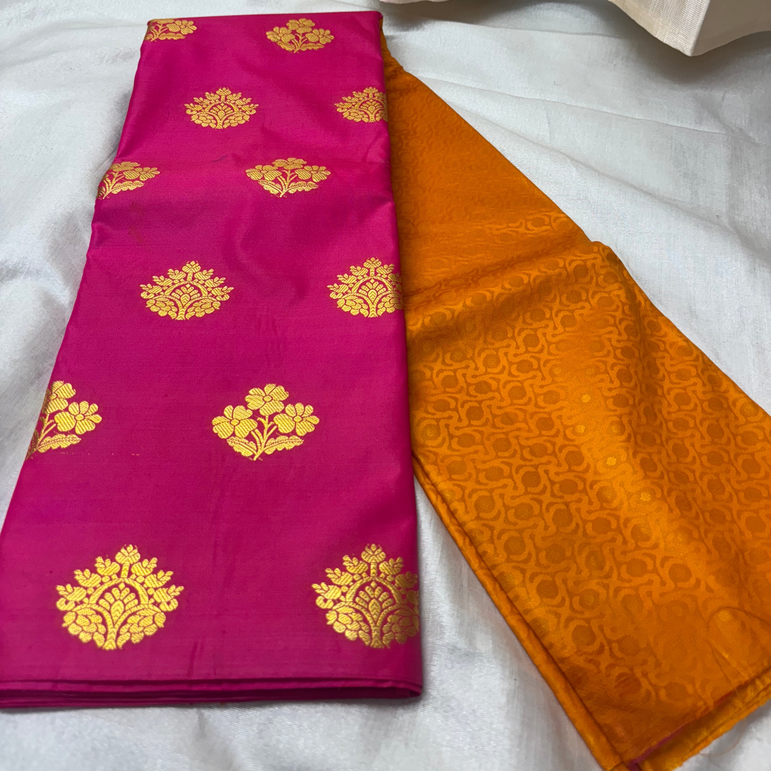 Woven with precision, this saree features a beautifully balanced half-and-half design that celebrates traditional handloom artistry. Each section carries its own texture and character, creating visual depth without overwhelming the design. Ideal for festive occasions and ceremonial wear, this saree offers sophistication rooted in culture.